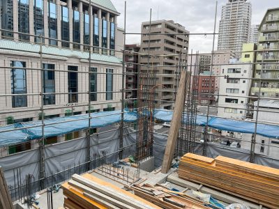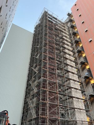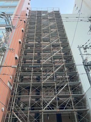 新築マンションの足場組立の様子です。
