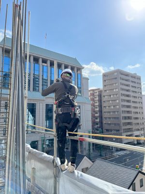 現在岩根工業では、解体工事の足場組立作業を行っています。