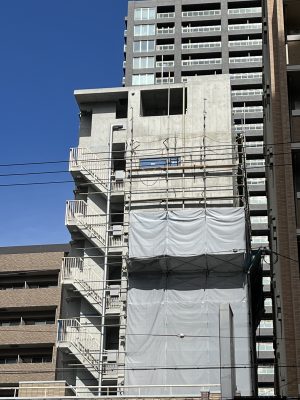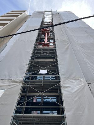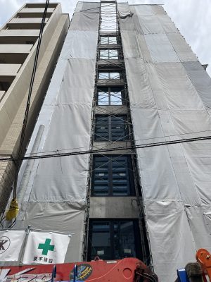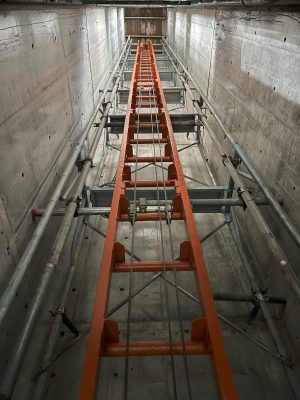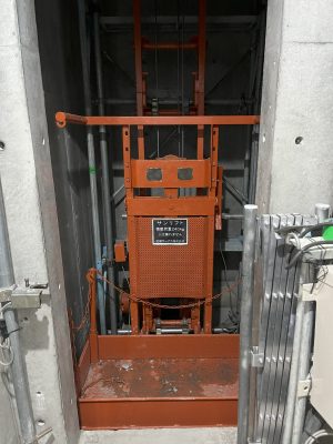 サンリフトとは、本設のエレベーター設置前に取り付ける資材搬入用のリフトです。